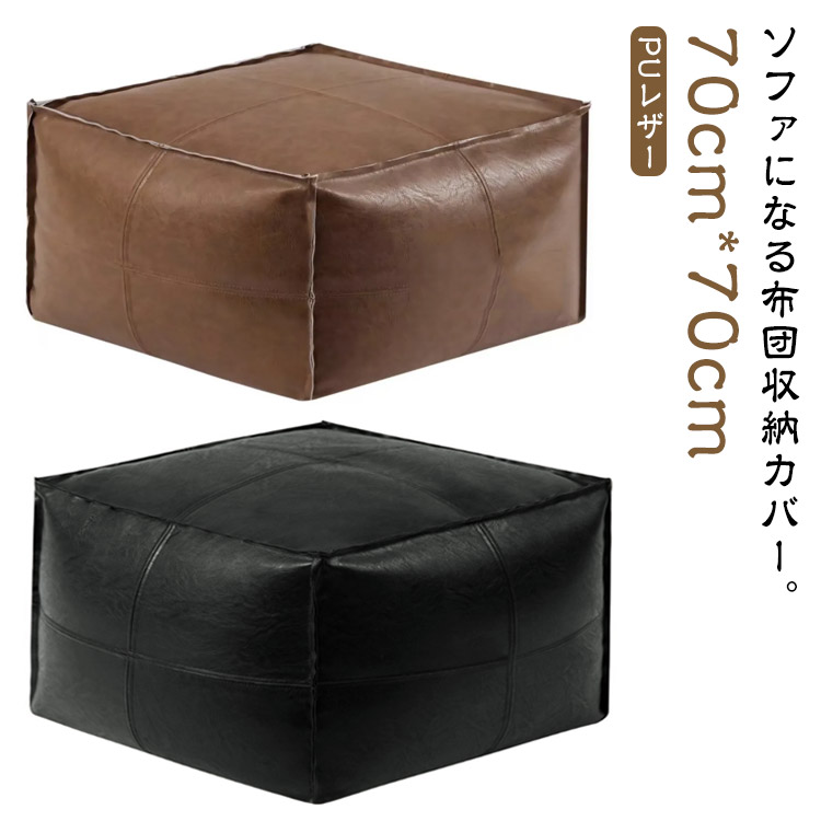 ■布団収納 ケース 布団収納袋 クッション ソファ PU レザー 革 布団収納クッション リビングクッションになる 掛け布団収納ケース スクエ