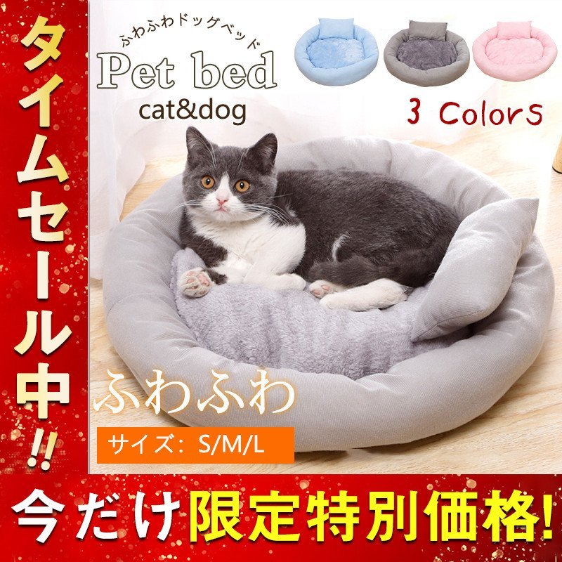 ■送料無料 ペットベッド クッション 犬猫用 小型犬 ベッド 丸形 寝袋 寝具 オールシーズン 寒さ対策 ふわふわ 防寒 あたっか ソファ