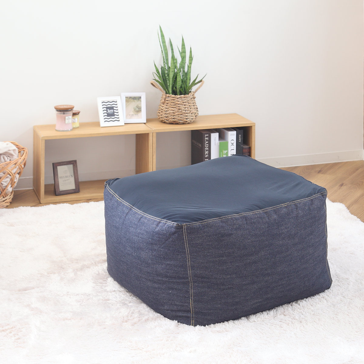 ■ビーズクッション Lサイズ キューブチェア デニム ( 洗える カバー クッション ビーズ ソファ 1人掛け 座椅子 日本製 65×65×43cm もち