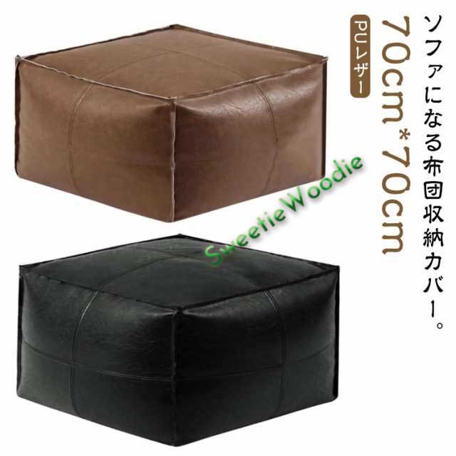 ケース 掛け布団収納ケース 布団収納 クッション ソファ PU スクエア型 布団収納クッション 革 リビングクッションになる レザー 布団収納 70cm×70cm 掛け布団 敷き布団 収納袋 収納ケース 収納カバー 毛布収納 ブランケット収納 ビーズクッションカバー