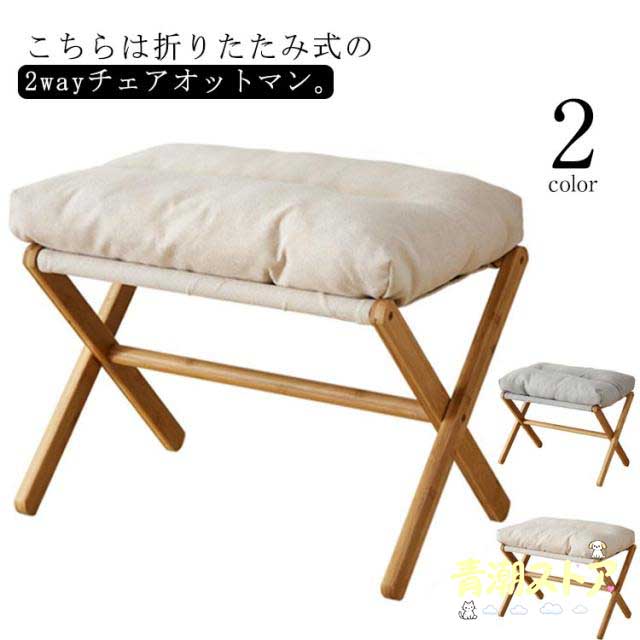 ■スツール+クッション ソファ 足置き オットマン 北欧 椅子 チェア 折りたたみ 木 フットスツール 脚置き コンパクト 収納便利 カバー付き