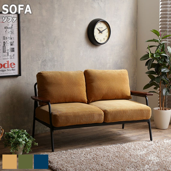 ■Basquiat corduroy コーデュロイソファ 2人掛け用 (sofa ソファ 2P 木肘 コーデュロイ ネイビー イエロー グリーン モダン 西海岸 ブル