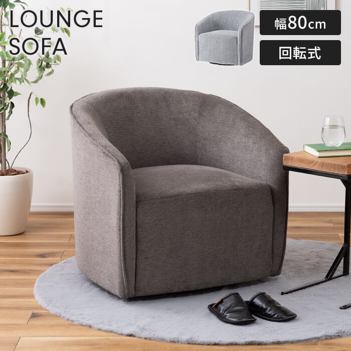 背面からアームかけての曲線が上品なラウンジソファ。◇背面のクッション性が高く包み込むようなデザイン。◇ゆったりと身体を預けて、リラックスできる空間を演出。◇回転式なので座ったまま体の向きを変えることができる、機能性の高いアイテム。◇しっかりとした固めの座面は長時間腰掛けても疲れにくい設計。◇優しいさらさらとした触り心地が魅力的なファブリックを使用。◇座面が360°回転し立ち座りしやすい仕様。キーワード: ソファ ソファー 1人掛け 一人掛け 回転 回転式 回転チェア 回転ソファ 回る 肘付き 肘あり アームソファ アームレスト 1人 一人 クッション 座面高43 布地 布張り シンプル モダン グレー ダークグレー チャコールグレー