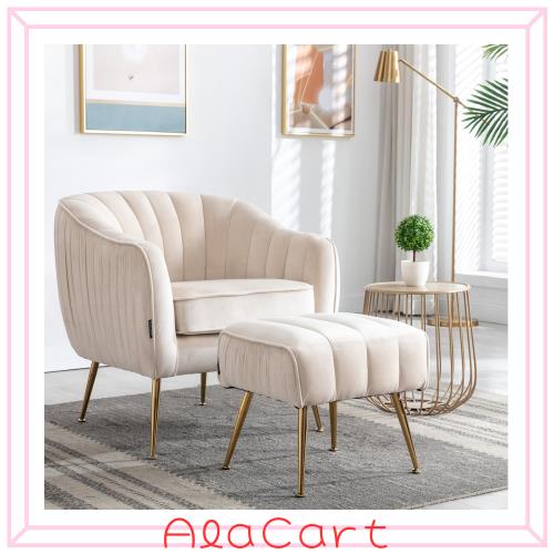 ■Altrobene 1人掛け ソファー オットマン付き ベルベット ソファ モダン 一人暮らし 座り心地が良い カウチ 組み立ても簡単 リビングソフ