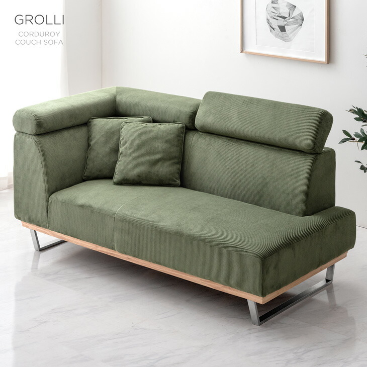 カウチソファ ヘッド リクライニング コーデュロイ シンプルモダン 2人掛け カウチ ソファ ソファー カウチソファー 布 天然木 スチール 脚 ブラウン ベージュ グリーン おしゃれ モダン【商品番号:82500107】