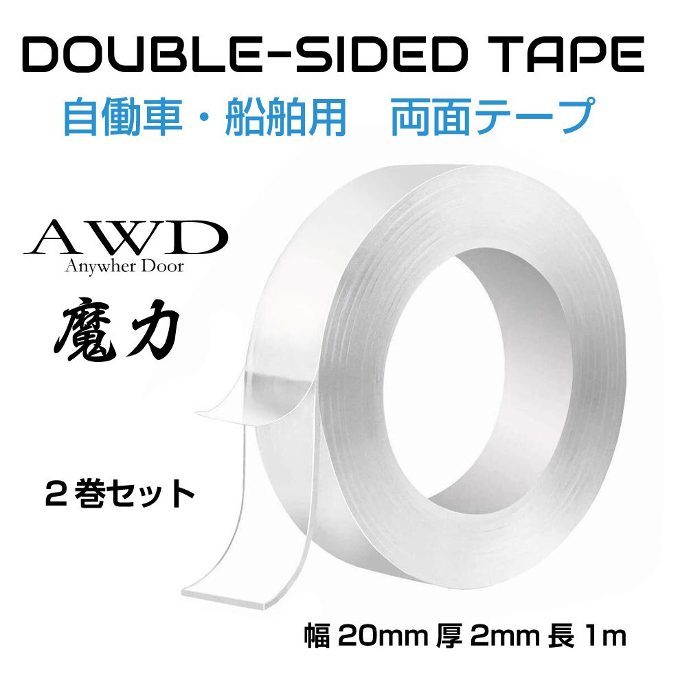 ■両面テープ 超強力 はがせる 強力 ドラレコ 伸縮性 浮かせる収納 滑り止め 玄関 収納 透明テープ シリコン 強力両面テープ W20×D2mm/長