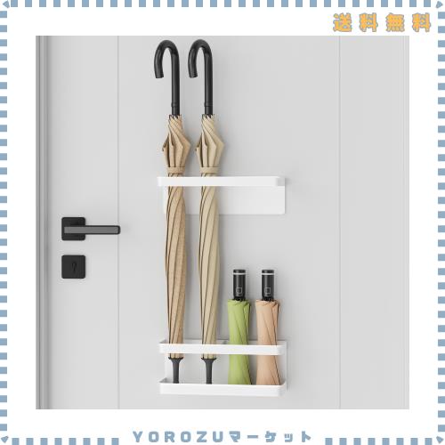 ■マグネット 傘立て フック付き アンブレラスタンド スリム コンパクト 傘入れ かさラック キッチン 玄関 収納 (ホワイト, Lサイズ)