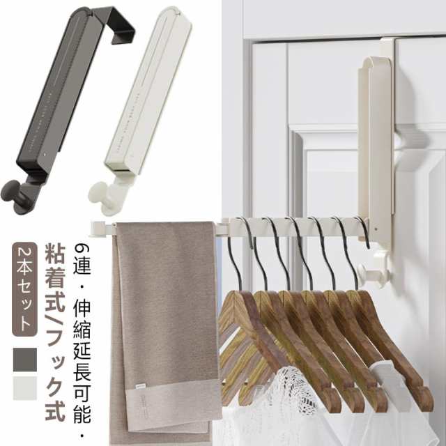 フック ロング 【2本セット】 ドアフック 折れ戸 スリム 6連 折りたためる ハンガー 衣類 扉 洗濯物 玄関 収納 室内干し タオル 傘 掛け 引っ掛け カバン ドアハンガー 折りたたみ 帽子 【2本セット】 バッグ 収納 コートハンガー 花粉 雨 邪魔にならない