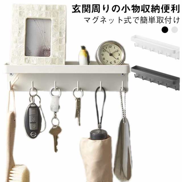 マグネット キーフック 壁掛け 収納フック 玄関 収納 磁石 鍵入れ 小物入れ 強力マグネット 多機能 フック 穴あけ不要 ホワイト ブラック