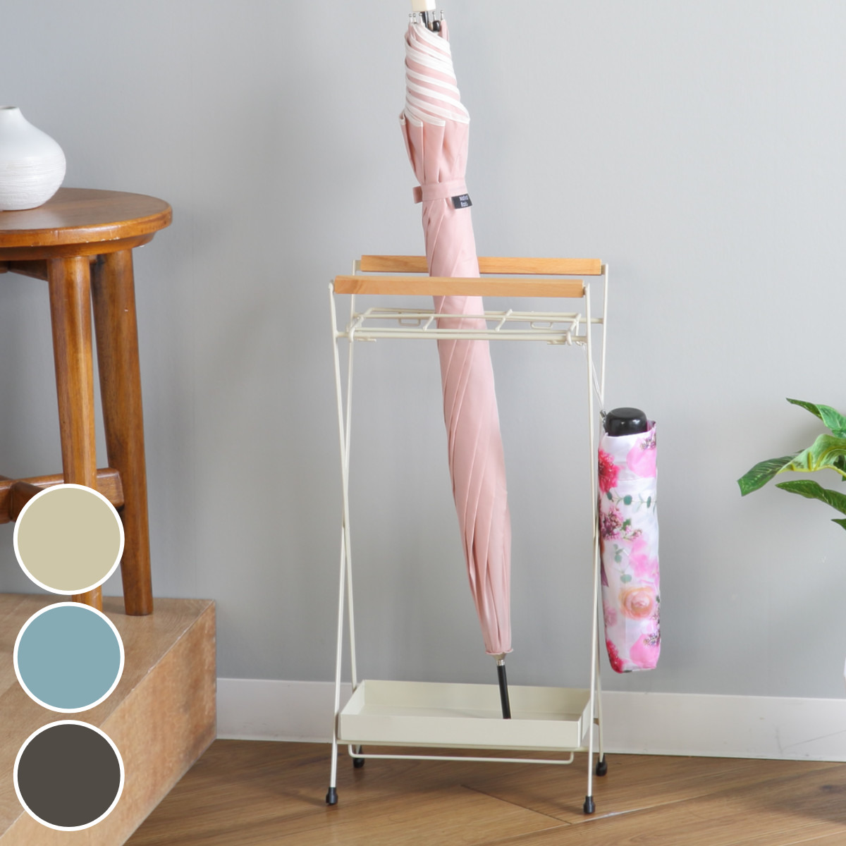 ■傘立て スリム アイアン 木製フレーム ( アンブレラスタンド 傘立 コンパクト 折り畳み 玄関 収納 シンプル おしゃれ かさたて 傘スタン
