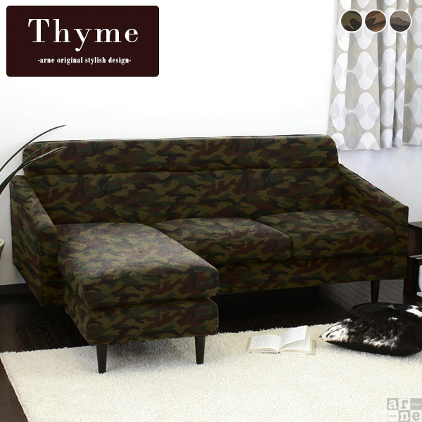 ソファ 迷彩柄 カウチソファ 3人掛け コンパクト アーム付き ソファー 脚付き リビングソファ 日本製 レトロ Thyme L字 迷彩 □
