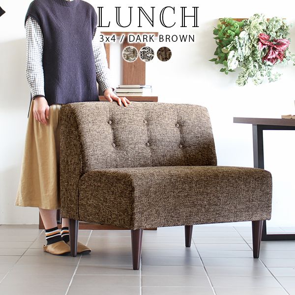 ■ソファ 1人用アームレスソファ 1人掛け ソファー 一人掛け 北欧 おしゃれ 肘なし ダイニングソファ レトロ Lunch 3×4アームレス/脚DB □