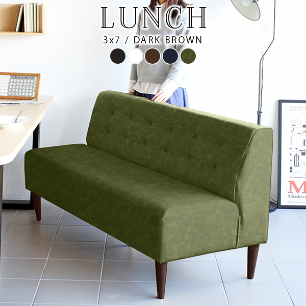 ■ソファ 160cm ダイニングソファ 合皮 北欧 3人掛け 脚あり アームレス 3人 革 おしゃれ 肘なし レトロ Lunch 3×7アームレス/脚DB □