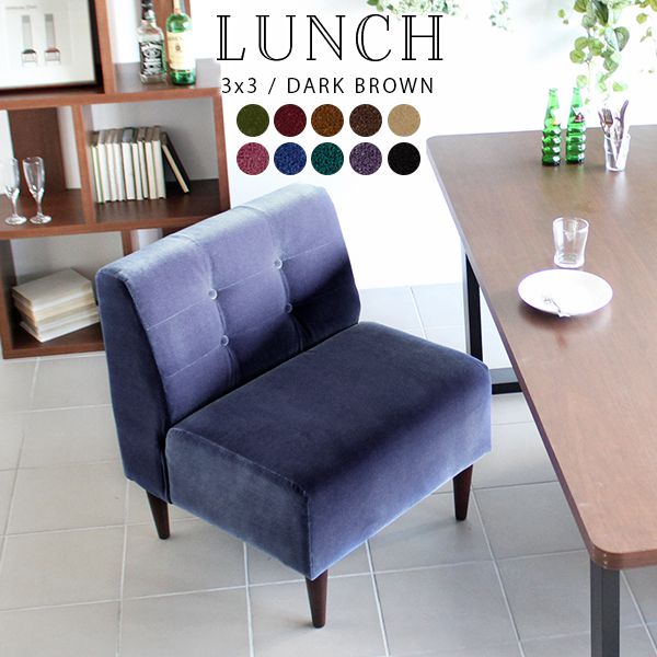 ■ソファ アームレス ブラック 1人掛け 北欧 シンプル おしゃれ 肘なし カフェ ソファー ダイニング レトロ Lunch 3×3アームレス/脚DB □