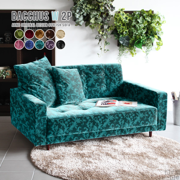 ■ソファ 脚付き 2人掛け レトロ お洒落なリビングソファ 日本製 ワイドソファ ローソファ クラシック Bacchus W 2P □