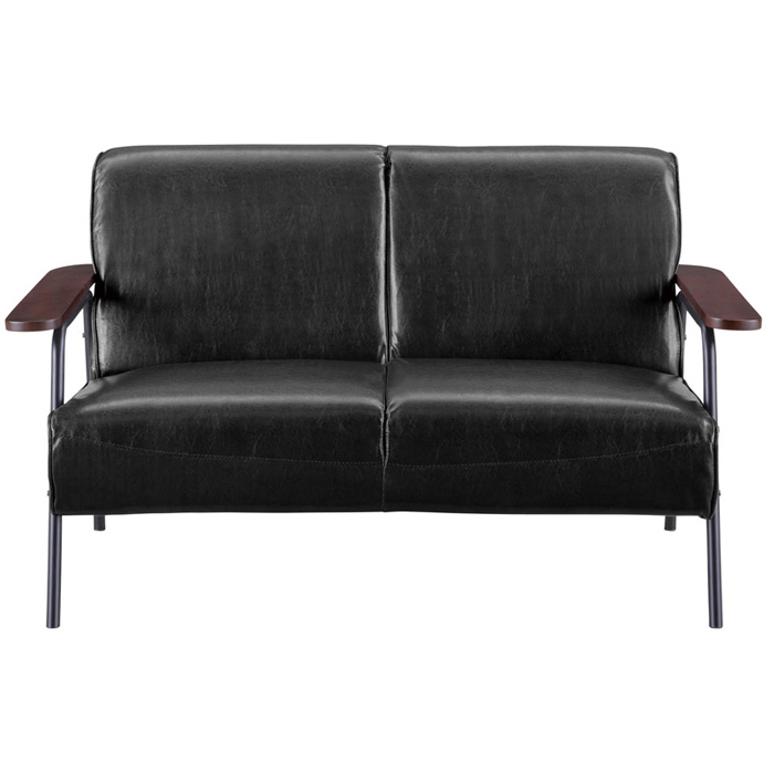 ■2人掛けソファー 幅136cm バイキャストレザー張り 男前インテリア アイアンフレーム 木肘付き ソファ レトロソファー コンパクト レトロ