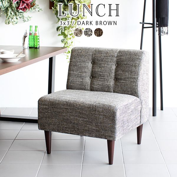 ■ソファ 1人用アームレスソファ レトロ 1人掛け ソファー 一人掛け 北欧 おしゃれ 肘なし ダイニングソファ Lunch 3×3アームレス/脚DB □