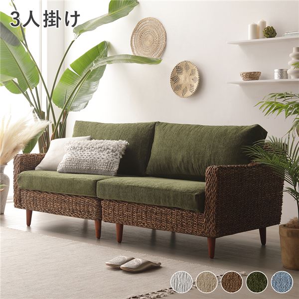 ■アバカ ソファ 3人掛け 約幅170cm グリーン 洗える ウォッシャブル カバーリング仕様 木製 脚部組立式 脚付き ソファー インテリア家具