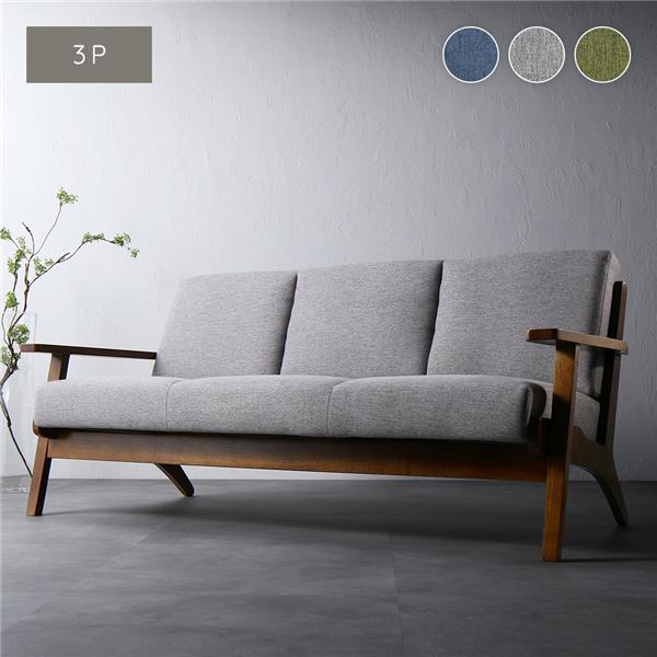 ■ソファ 3人掛け グレー 肘付き 天然木 木製 木肘 木枠 北欧風 ソファー デザイナーズ お客様組立品 インテリア家具 送料無料