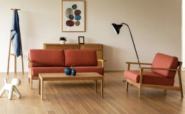 スタイリッシュな無垢材フレームに、落ち着いたレッドオークの色合いと木肌、フェザーを贅沢に使用した包みこまれようなクッション。どの角度から見ても美しいデザインと実用性を兼ね備えています。張地は布張りになっており、立体感のある通風組織のジャガード織物で、表面にはモール糸をたっぷり織り込み、やさしい風合いに仕上げています。ポリエステル100%なので、お洗濯も可能でメンテナンス性にも優れています。※天然木を使用しているため、木目や色合いが1品ずつ異なります。※付属の品質表示の「使用上のご注意」をよく読み、正しくご使用ください。※年末年始・GW・お盆期間中はお届けまでに通常よりお時間がかかる場合がございます。■生産者の声私たち、株式会社シラカワは、市場の動向に左右されない時代を見越した本物を