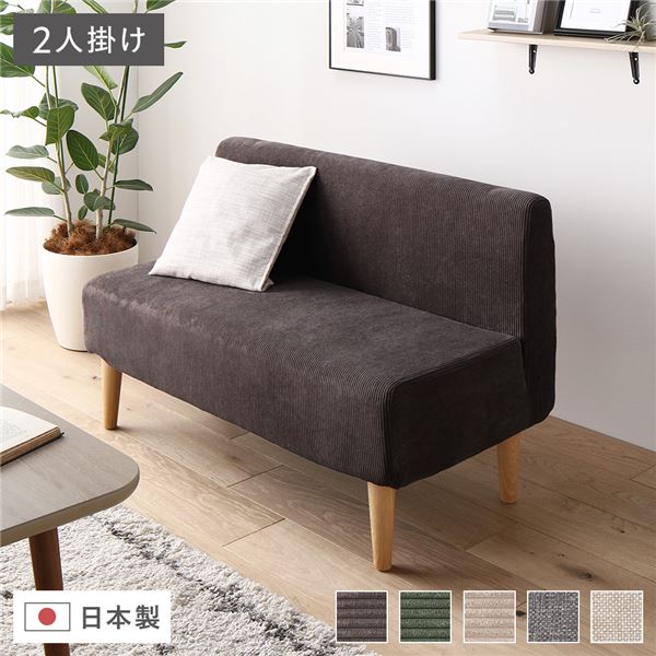 ■日本製 国産 ダイニングソファ 単品 2人掛け コーデュロイチャコールグレー ナチュラル脚 ポケットコイル ソファ コンパクトソファ 送料