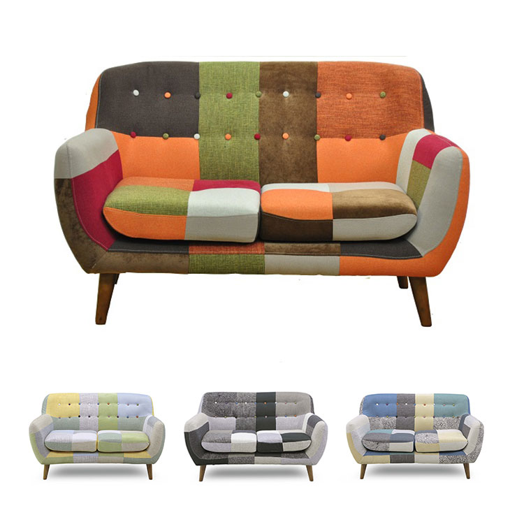 ソファー カラフル 2人掛けソファー お洒落 ユニーク デザイン 2Pソファー SOFA ファブリック 可愛い パッチワークソファー ソファ 布張り オリジナル 2人用 モダンチェア 2人掛け椅子 【超大型】【後払/時間指定NG】【商品番号:33010036】