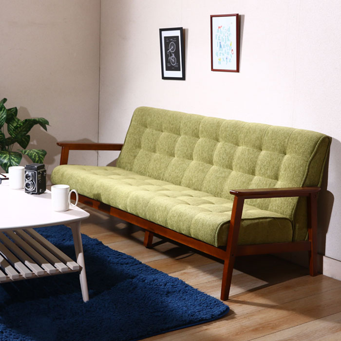 ■【値下げ】3人掛け ソファー ファブリック 幅170 カフェ風 ファブリックソファ 木製フレーム デザイン 木製 天然木 肘付きソファ