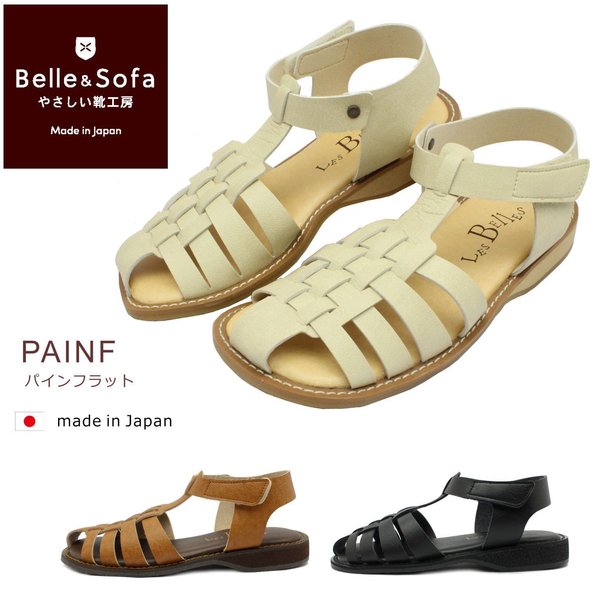 ■やさしい靴工房 Belle & Sofa レディース グルカサンダル マジックテープ パインフラット PAINF ベル&ソファ 外反母趾 痛くない 走れる 婦