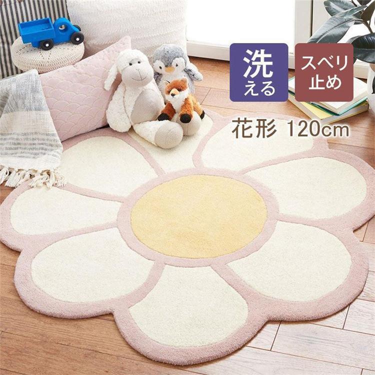 ■【ポイント10倍!】明日まで値下げ 花形カーペット 120cm かわいい 四季円形ラグ シンプル 敷物 リビング おしゃれ 春 夏 北欧 絨毯 室内