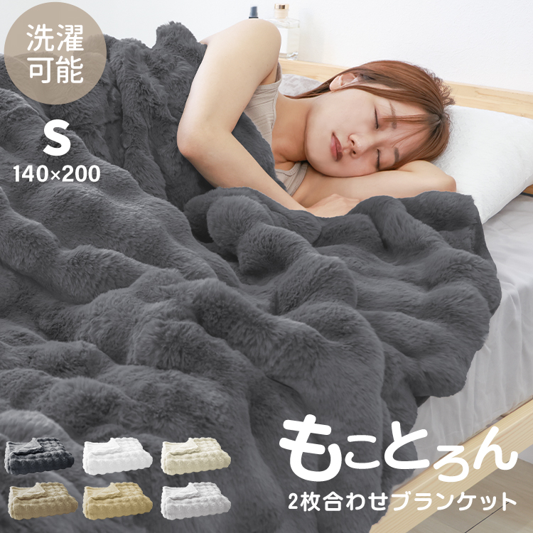 ■毛布 2枚合わせ シングル もことろん毛布 140×200cm もこもこ 毛布2枚合わせ 冬 ふわふわファー 布団 掛け布団 厚手 こたつ布団 こたつ