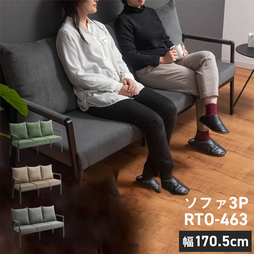 3人掛けソファ ソファー おしゃれ スチール 黒 ブラック コーデュロイ 肘掛けあり アーム付き インダストリアル モダン シンプル ベージュ グリーン グレー 東谷