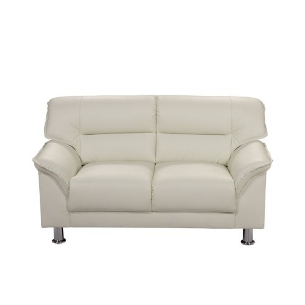 ■シンプル リビングソファー 【2人掛け アイボリー】 幅128cm 木製 金属 スチール 製脚付き 合皮 フェイクレザー 張地 〔ダイニング 店舗