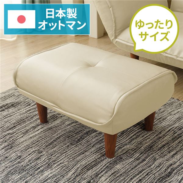 ■日本製 シンプル オットマン/スツール 〔PVC生地 アイボリー〕 脚部:ブラウン 幅59cm ゆったりサイズ 【北海道・沖縄・離島配送不可】