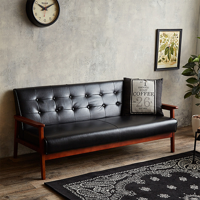 ■ソファー おしゃれ NEW RETRO オリジナル 3人掛けソファ 肘掛け付き 天然木 快適 クッション性 シンプル 北欧風 モダン レトロ 男前 カフ