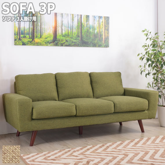 ■LUCIA ルシア ファブリックソファ 3人掛け用 (sofa ソファー 3P グリーン ベージュ シンプル 木脚 北欧 ナチュラル ファブリック カント