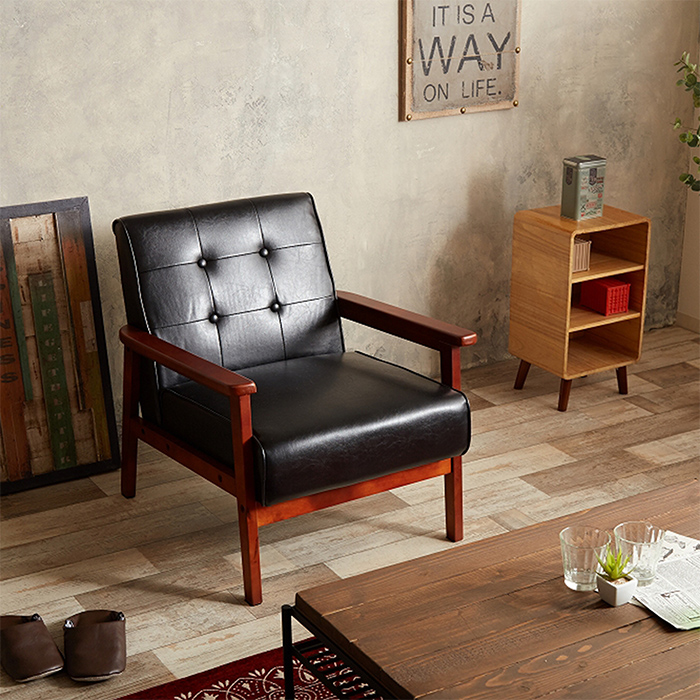 ■ソファー おしゃれ NEW RETRO オリジナル 1人掛けソファ 肘掛け付き 天然木 快適 シンプル 北欧風 モダン レトロ 男前 カフェ風 一人暮ら