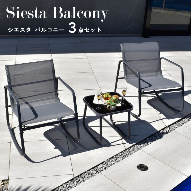 ■ガーデンファニチャー ガーデンチェアセット 2人用 屋外家具 プール ホテル カフェ バルコニー シンプル グレー テラス チェア シエスタ