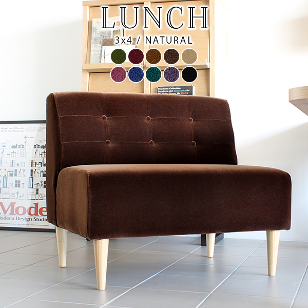 ■ソファ 茶色 アームレスソファ カフェ ダイニングソファ ソファー 1人掛け コンパクト 北欧 おしゃれ シンプル Lunch 3×4アームレス/脚N