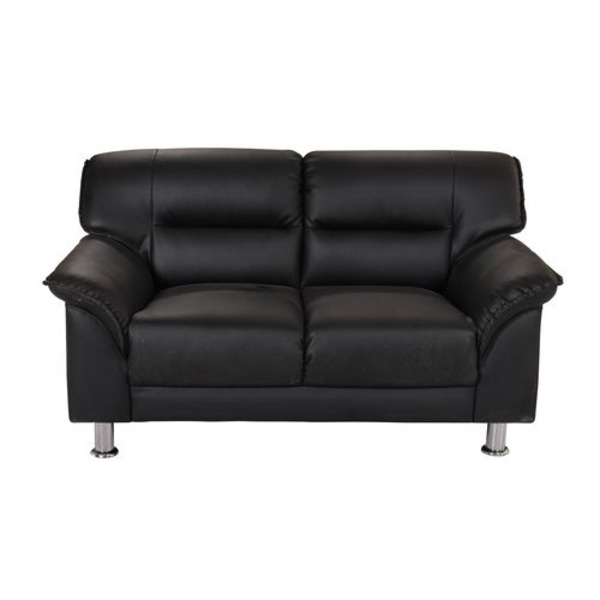 ■シンプル リビングソファー 【2人掛け ブラック】 幅128cm 木製 金属 スチール 製脚付き 合皮 フェイクレザー 張地 〔ダイニング 店舗 お