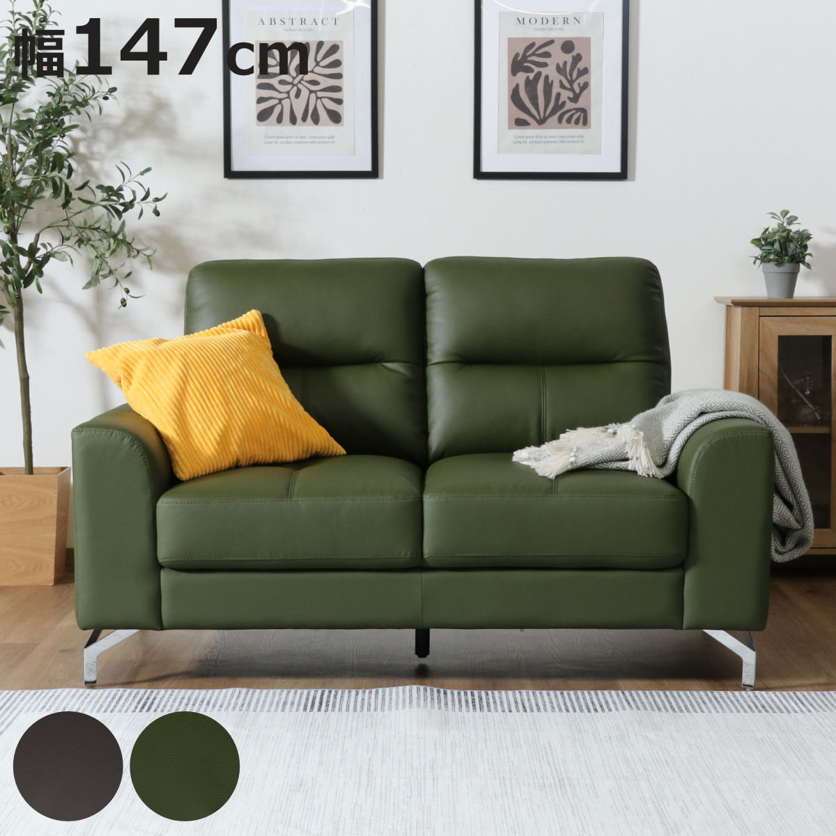 ■レザーソファ 幅147cm 2人掛け 革ソファ ジーク ( レザー アームレスト 肘付き シンプル ビンテージ調 北欧風 高級感 重厚感 )