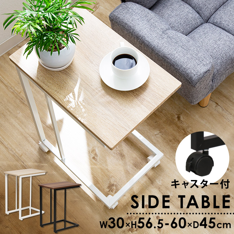 ■サイドテーブル テーブル STB-C001WN アイアン キャスター シンプル アジャスター キッチン ベッド ソファ リビング 木製 サイドテーブ