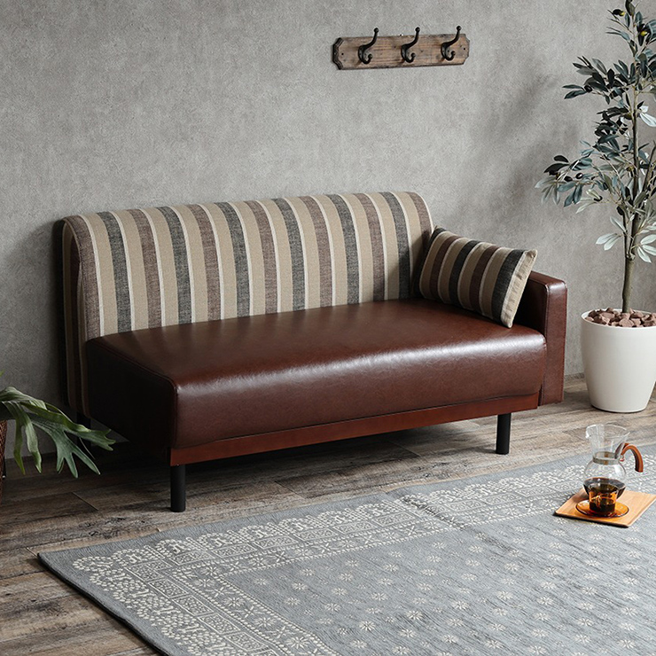 ■長椅子 おしゃれ Trent 2人掛け ストライプベンチソファ シンプル かっこいい ヴィンテージ風 コンパクト 耐久性 快適 安定感 ワンルーム
