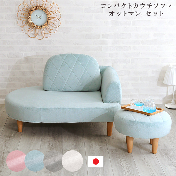 ■カウチソファ スツールセット (ブルー) パステルカラー 全4色 ロータイプにも ポケットコイル コンパクト シンプル かわいい オットマ
