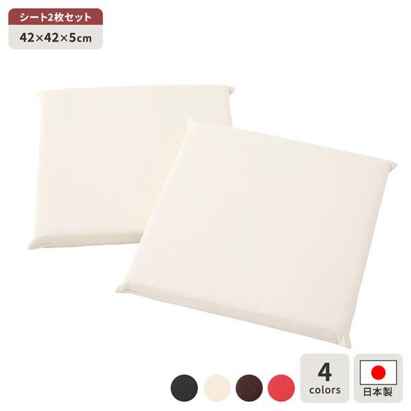 ■座布団 アイボリー 2枚セット 日本製 スクエア クッション フラット シート 42×42 cm PVC 合皮 レザー シンプル モダン デザイン