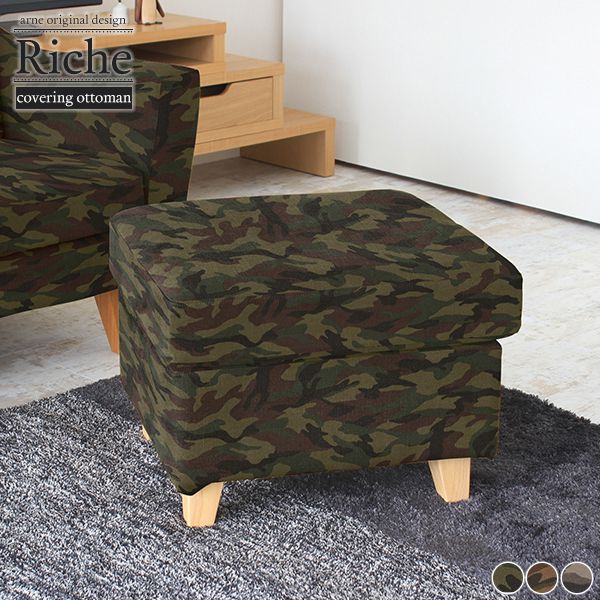 Riche ot 迷彩生地サイズ:約幅580 奥行き530 高さ430 mm脚高さ:100 mm材質:[本体]ウェービングベルト、芯材、ウレタンフォーム [脚]天然杢[張地]綿100%カラー:カーキ/ブラウン/ベージュ重量:約9kgブランド:arne日本製/完成品(脚のみお客様取り付け)カバー取り外し可/洗濯・クリーニング不可※オーダー品のキャンセル・変更にはお届け前でも生産手配が済んでいるためキャンセル料(商品代金の50%)を頂戴します【送料無料】【ご注意】離島・郡部など一部配送不可地域あり。配送不可地域の場合は通常の配送便での玄関渡し。建物の形態(エレベーターの無い3階以上など)によっては別途追加料金を頂戴する場合あり。吊り上げ作業などが必要な場合についても追加料金はお客様ご負担です。サイズの確認不十分などの理由による返品・返金は不可。ご注文前に商品のサイズ、搬入経路の幅・高さ・戸口サイズ等充分にご確認願います。0000a50721/0000a50722/0000a50723/