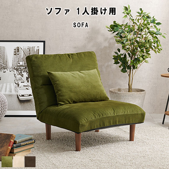 ■Sofa ソファ 1人掛け用 (sofa 1P 1人暮らし ワンルーム 柔らかい 肘無し ローソファ クッション シンプル モダン グリーン 緑 アイボリ
