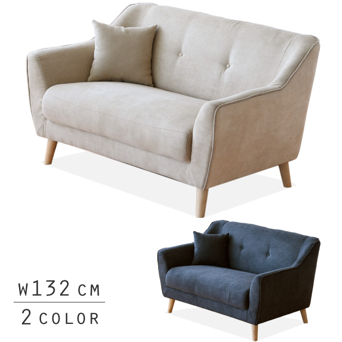 ■ソファ ソファー 2人掛けソファ 幅132cm 布張りソファ 2人掛けソファー ファブリックソファー クッション付き ナチュラル シンプル レト