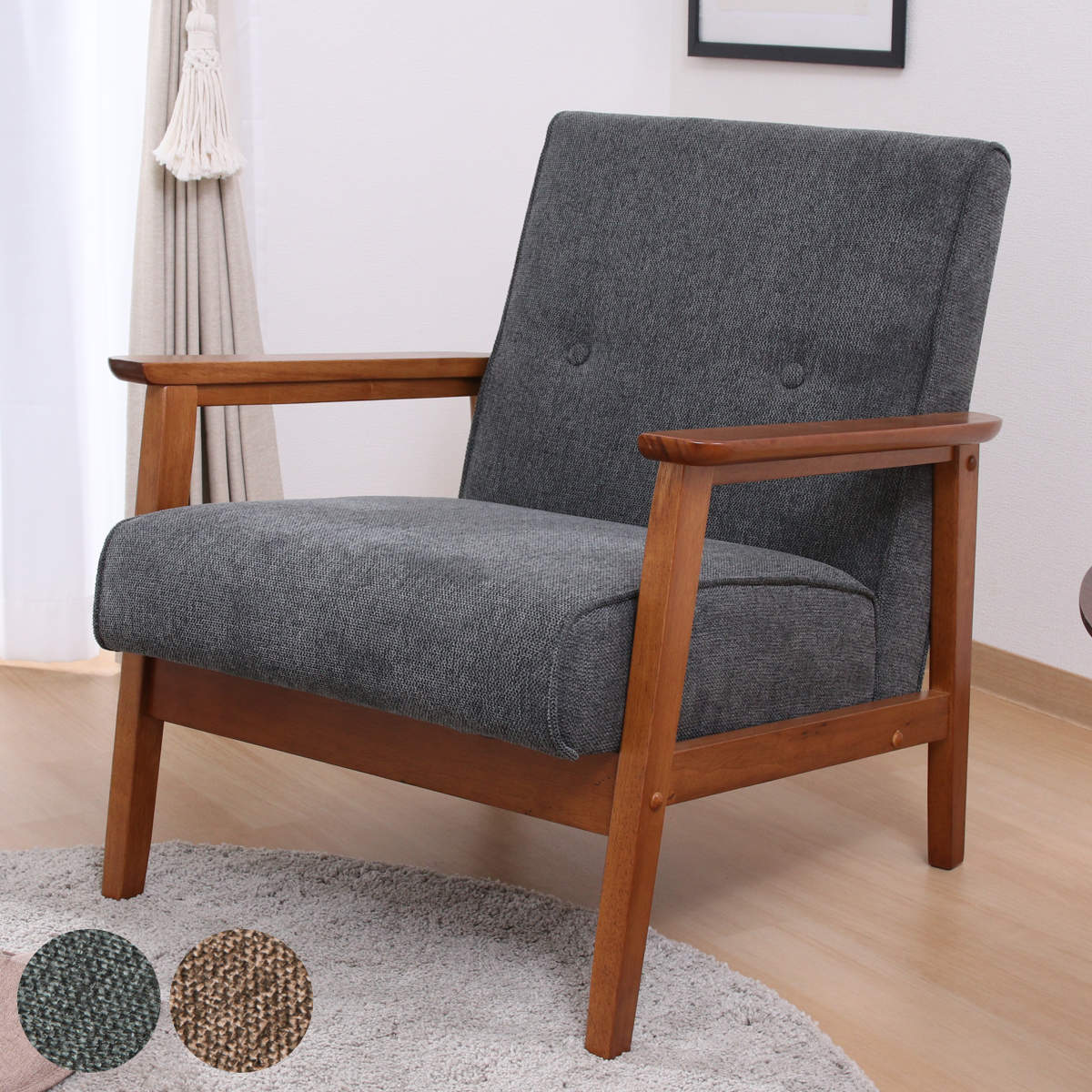■ソファ 1人掛け 座面高36cm 厚手ファブリックソファ ミート ( 肘付き 天然木 木製 フレーム シンプル ビンテージ調 北欧 ナチュラル )