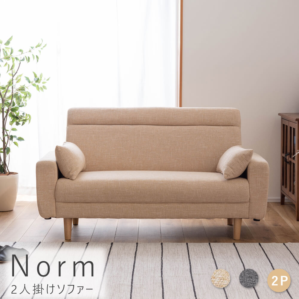 ■Norm(ノルム)2人掛けソファ ソファ おしゃれ シンプル モダン グレー ベージュ クッション付き ファブリック 布製