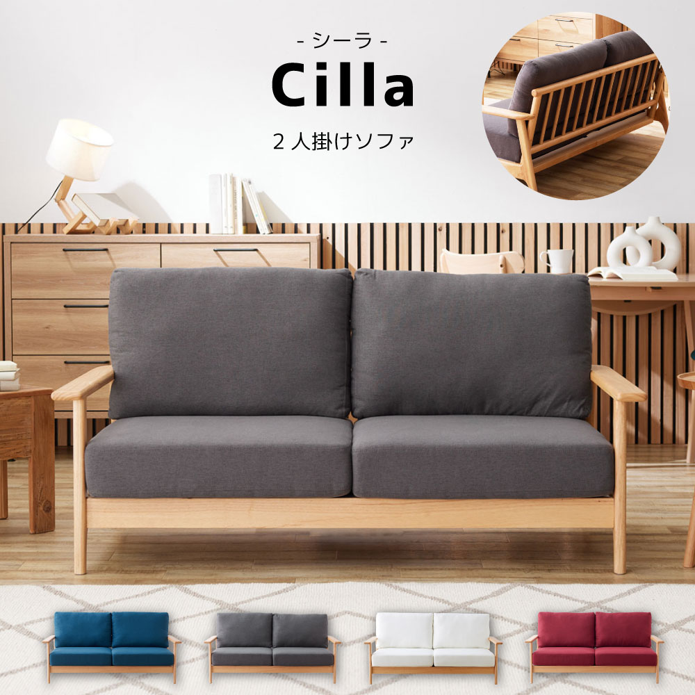 ■Cilla シーラ ソファ 2人掛け 2.5人掛け 置きクッションタイプ ラバーウッド ポケットコイル シンプル クリーニング カバー取外し アイボ